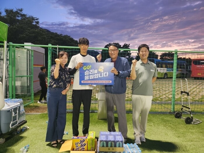 신권준 과장과 직원들은 자매결연팀인 전북제일고 축구팀을 응원하기 위해 직접 축구장을 찾아가 음료수 등 물품을 전달하면서 승리를 응원하였다.