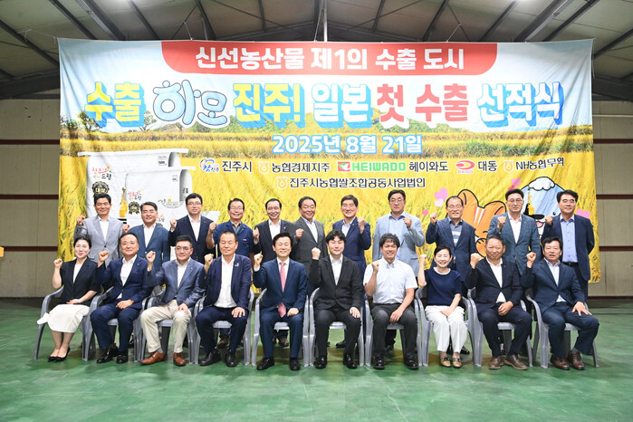 진주시는 21일 진주시쌀조합공동사업법인(대표 박윤철)에서 조규일 진주시장과 이천일 농협경제지주 상무, 일본 바이어인 ㈜헤이와도·이토추식품(주)·대동(주) 관계자 등이 참석한 가운데‘진주드림 쌀’을 일본에 첫 수출하는 선적식을 가졌다고 밝혔다.