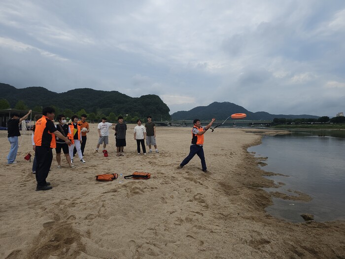 이날 교육은 ▲119시민수상구조대원 임무에 관한 사항 ▲여름철 물놀이 안전지도 및 수난사고 시 안전수칙 ▲익수자에 대한 심폐소생술 및 기본응급 처치법 ▲구명환 투척법 등 수상인명구조 가이드를 활용한 교육과 훈련으로 진행됐다.