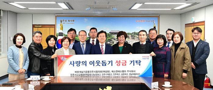 이날 기탁식에서는 에스앤에스밸브(주)(대표 안병헌)가 성금 3,000만 원을, 바르게살기운동 진주시협의회(회장 안현수)는 성금 1,000만 원을, 진주지역 고교동문연합회(회장 강원환)는 성금 500만 원을 전달했다. 기탁된 성금은 진주시복지재단을 통해 지역 내 어려운 이웃을 위해 소중히 사용될 예정이다.