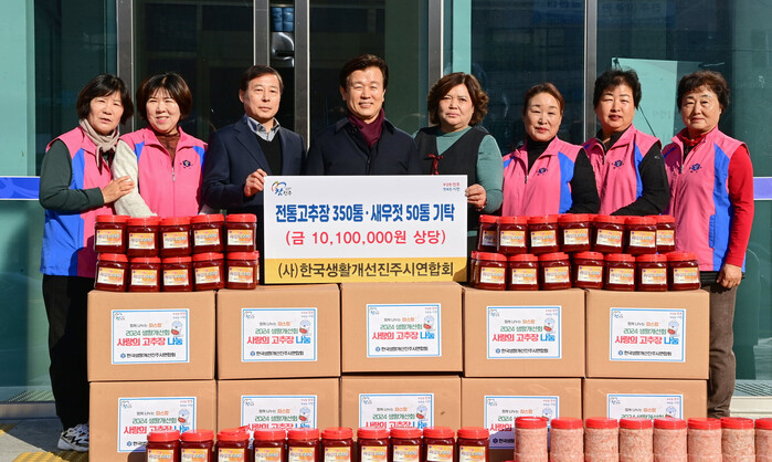 한국생활개선진주시연합회(회장 정성남)가 10일 진주시복지재단을 방문해 ‘사랑의 고추장 나눔 행사’를 가졌다.
