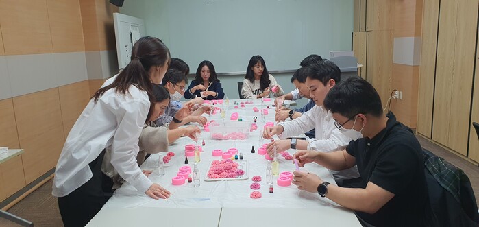 안다아시아벤처스 직원들이 직접 카네이션 비누를 만들어 강남시니어플라자 재가 어르신들에게 영양죽 후원 물품과 함께 직접 전달했다.
