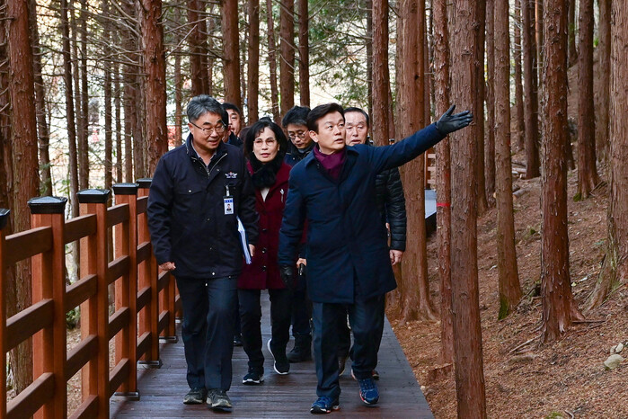 또한 “이용객의 안전사고 예방을 위해 노면 정비와 안전 난간 설치 등으로 위험지를 정비하였다”며 “편백숲의 조성은 단순한 산림공원 조성을 넘어 지역 주민들의 삶의 질을 향상시키고, 자연과의 조화를 이루는 중요한 사업”이라고 강조했다.
