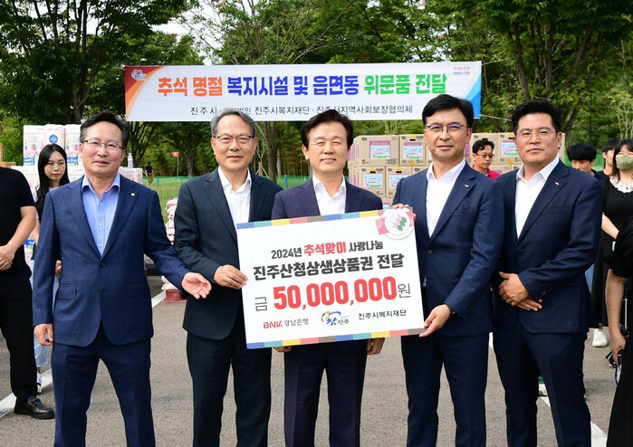 임재문 BNK(주)경남은행 서부영업본부장은 “항상 지역사회에 보탬이 되고자 노력하고 있다”며 “이번 상품권 기부를 통해 지역 내 어려운 이웃들이 조금 더 풍요롭고 행복한 명절을 보낼 수 있도록 작은 도움이 되길 바란다”고 말했다