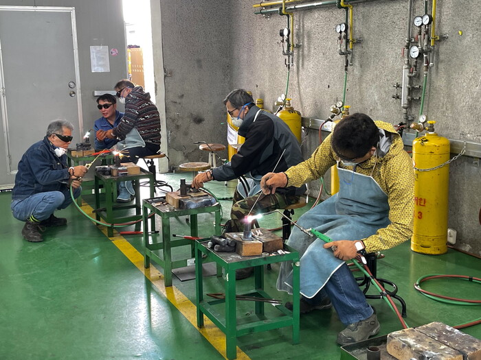 교육은 농업 현장에서 실질적으로 활용할 수 있는 다양하고 실용적인 프로그램으로 구성됐으며, 특히 피복아크 및 가스용접, 공조냉동 공작물 및 스테인리스 간이 공구통 만들기 실습에서 교육생들의 참여 열기가 뜨거웠다.
