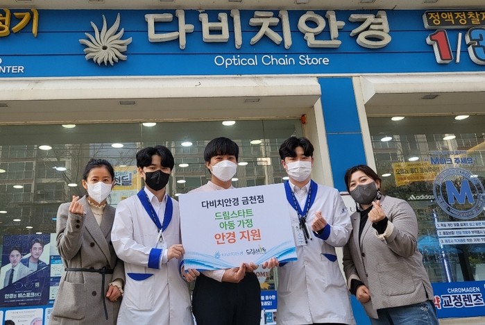 다비치안경 청주금천점은 2012년부터 현재까지 10년간 매월 5명에게 안경을 후원(1인당 5만원)해 지금까지 총 600명(3000만 원 상당)에게 후원을 해 왔으며, 이는 시력 저하로 불편함을 겪는 드림스타트 아동과 가족에게 큰 도움이 되고 있다.