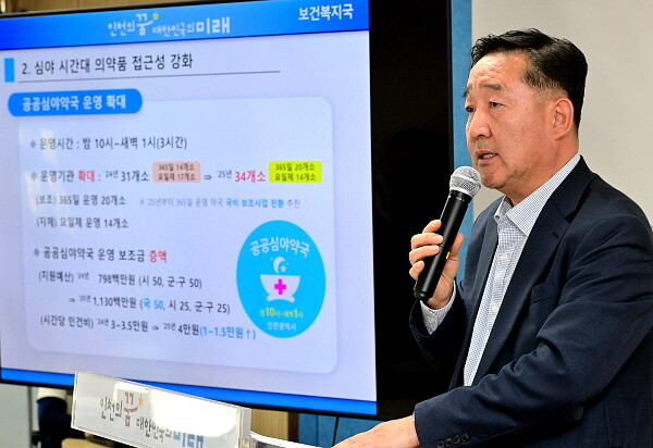 김학범 시 보건복지국장은 “공공심야약국은 모든 인천 시민이 누릴 수 있는 공공의료서비스”라며 “심야 시간에도 의약품을 구입할 수 있도록 공공심야약국의 사각지대 해소에 최선을 다하겠다”고 밝혔다.
