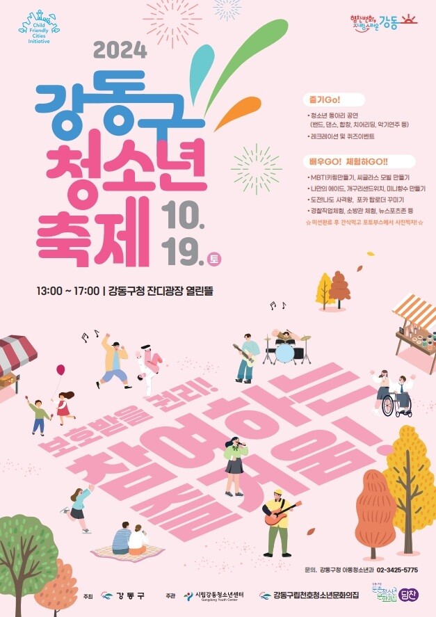특히 올해는 역대 가장 많은 관내 청소년 동아리들이 참여한다. 명일초등학교 합창단, 배재중학교 풍물 동아리 ‘진갈매’, 강일고등학교 치어리딩 동아리 ‘We go up’을 비롯해 밴드, 댄스, 뮤지컬 등 다채로운 분야에서 총 21개 팀이 공연을 선보이며 끼와 재능을 마음껏 펼칠 예정이다.