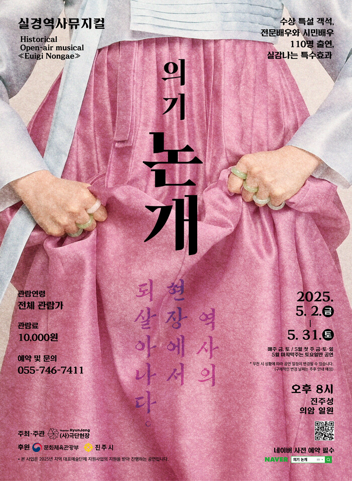 진주시와 문화체육관광부가 후원하고 (사)극단현장이 주최·주관하는 실경역사뮤지컬 ‘의기논개’는 2025년 지역대표예술단체 지원사업으로 선정되어 총 10회 공연으로 확대 편성되었다.
