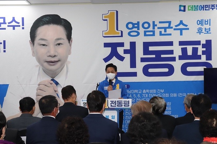 전동평 예비후보는 지역균형 발전, 스마트 안전도시 조성, 복지영암 건설, 교육도시 영암, 스포츠산업 육성 등 민선8기 공약을 발표했다.