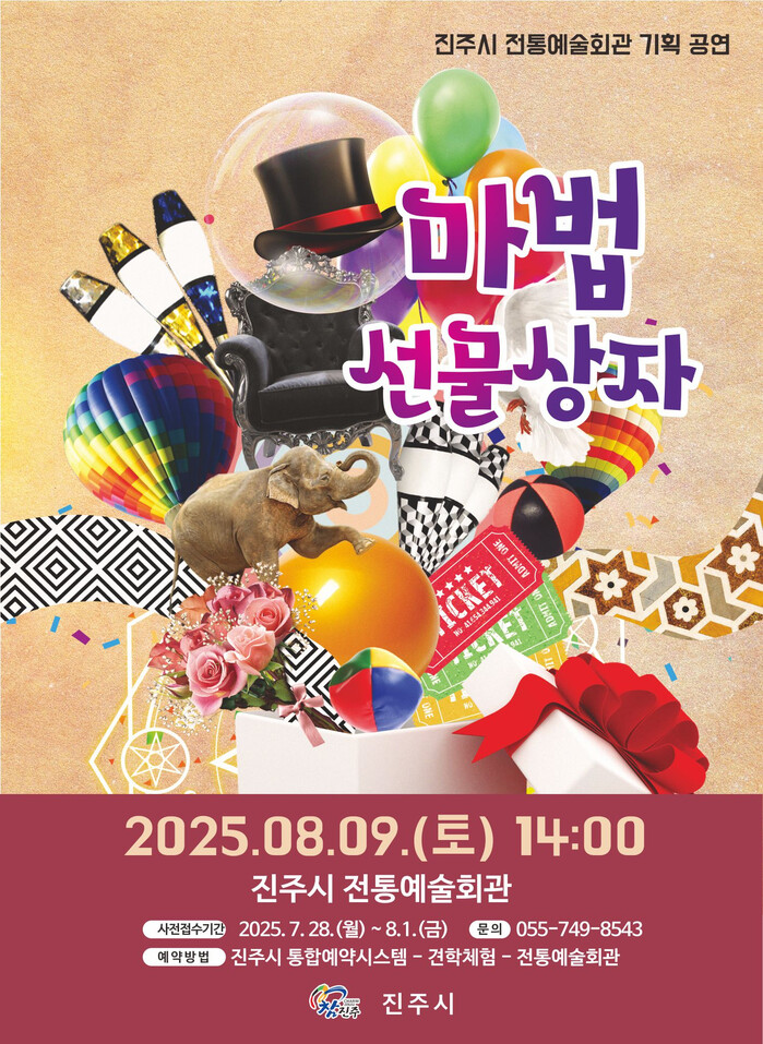 진주시는 8월 9일 오후 2시 판문동 소재 진주시 전통예술회관에서 기획공연으로 어린이 매직쇼인 ‘마법선물상자’를 개최한다고 전했다.