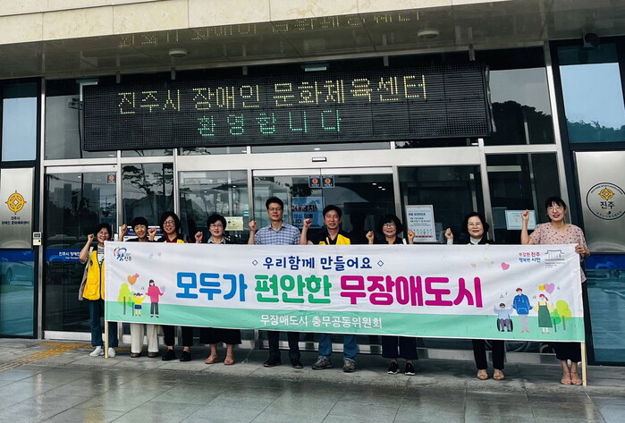 무장애도시 충무공동위원회(위원장 김성오)는 20일 진주시 장애인문화체육센터(반다비)를 견학하고 장애인 인식 개선 캠페인을 실시했다.