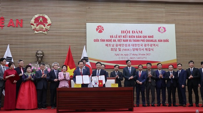 또 이날 협약식에는 광주시 외에 광주광역시 의회와 응에안성 의회, 광주광역시 소재 유통기업인 와이마트와 응에안성 투자무역센터, (사)디아코니아와 빈 의과대학간 협력 양해각서도 체결됐다.