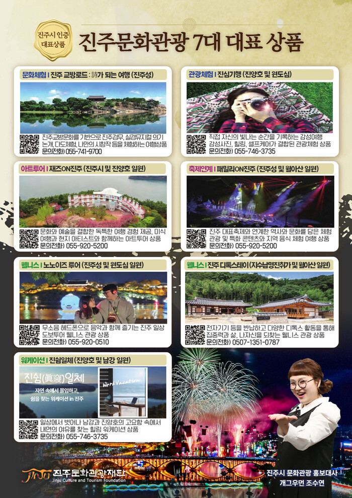 진주문화관광재단 대표이사 왕기영은 “진주시 인증 대표 관광상품을 통해 진주만의 관광 매력을 알리고, 지역 고유의 문화자원과 자연경관을 활용한 차별화된 콘텐츠로
