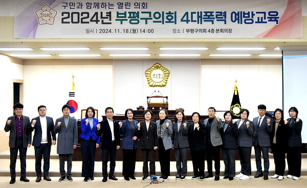 안애경 부평구의회 의장은 “이번 교육을 통해 4대폭력에 대한 올바른 인식을 강화하고, 성인지 감수성을 제고해 상호 존중하고 배려하는 의정문화를 만들어가도록 부평구의회가 앞장서겠다.”고 말했다.
