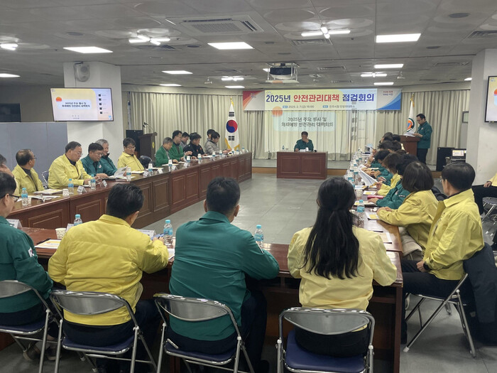진주시는 7일 시청 민방위대피소에서 오는 12일 정월대보름 달집태우기 행사, 아파트 화재·산불, 중대재해 예방관리 및 각종 체육행사에 대비하여 안전사고 예방을 위한 ‘2025년 특별 안전관리대책 점검회의’를 개최했다.