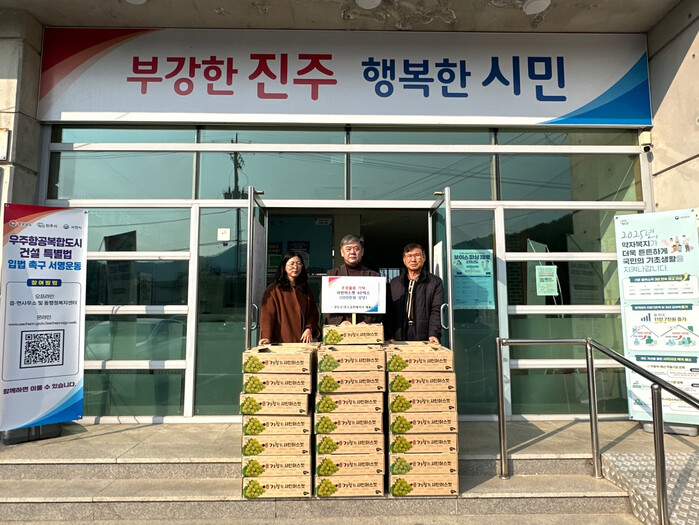 이반성면사무소는 20일 설 명절을 앞두고 포스코컨테이너 스틸하우징(대표 장도수)에서 이반성면사무소에 100만 원 상당의 샤인머스켓 40박스를 기탁하였다고 밝혔다. 이번 기부물품은 이반성면 내 경로당 24개소와 저소득 계층 16세대에 전달될 예정이다.