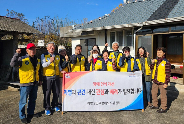 진주시 이반성면 무장애도시위원회(위원장 서동원)는 28일 이반성면 중도마을과 죽산마을에서 장애 인식 개선 캠페인과 함께 주거약자 편의시설 설치 봉사활동을 실시했다.