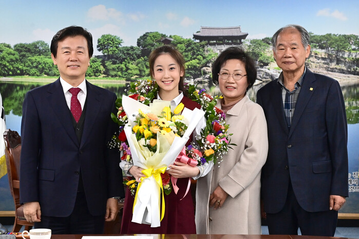 진주시는 19일 시청 기업인의 방에서 진주시 홍보대사인 오유진의 TV조선 ‘미스트롯 3’ 미(美) 수상을 축하하는 자리를 가졌다.