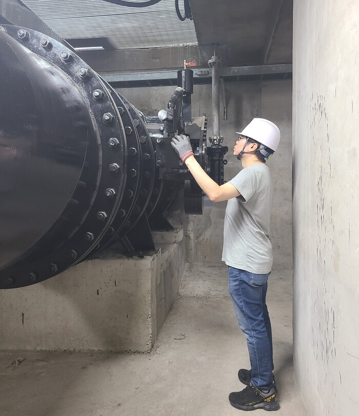 | ▲ 관리자가 빗물펌프장 시설물 점검하는 모습. (사진=성동구청 제공) |