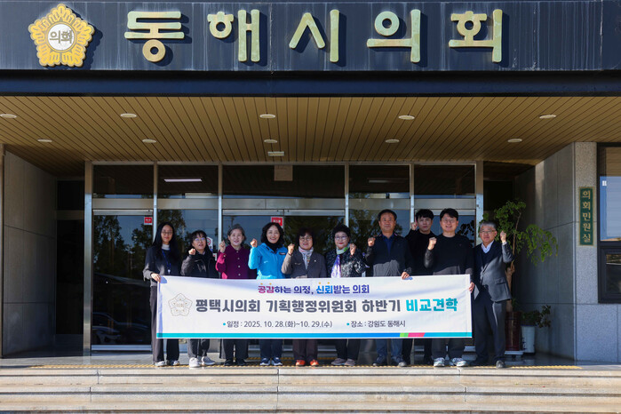 [평택=오왕석 기자] 평택시의회 기획행정위원회(위원장 김영주)는 지난 10월 28일부터 29일까지, 강원도 동해시를 방문해 도시재생과 문화관광이 조화를 이루는 우수사례를 벤치마킹하기 위해 하반기 비교견학을 실시했다.