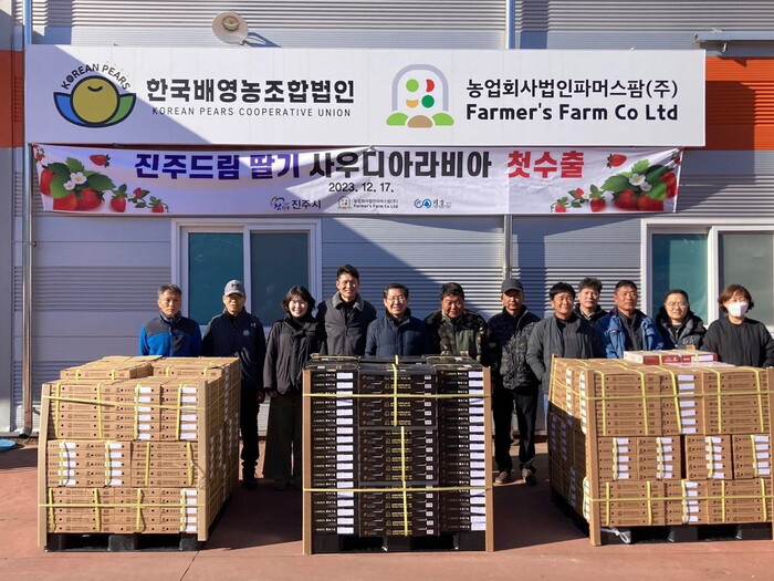 진주시는 지난 17일 농업회사법인 파머스팜(주)(대표 김건수)에서 사우디아라비아로 진주드림(진주시농산물 공동브랜드) 딸기 640kg을 첫 수출했다고 밝혔다.