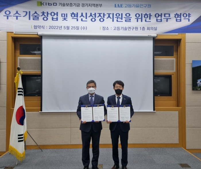 기술보증기금(이사장 김종호, 이하 ‘기보’)은 25일(수) 경기도 용인시 소재 고등기술연구원에서 고등기술연구원(원장 김진균, 이하 ‘IAE’)과「우수기술창업 및 혁신성장 지원을 위한 업무협약」을 체결했다고 밝혔다.