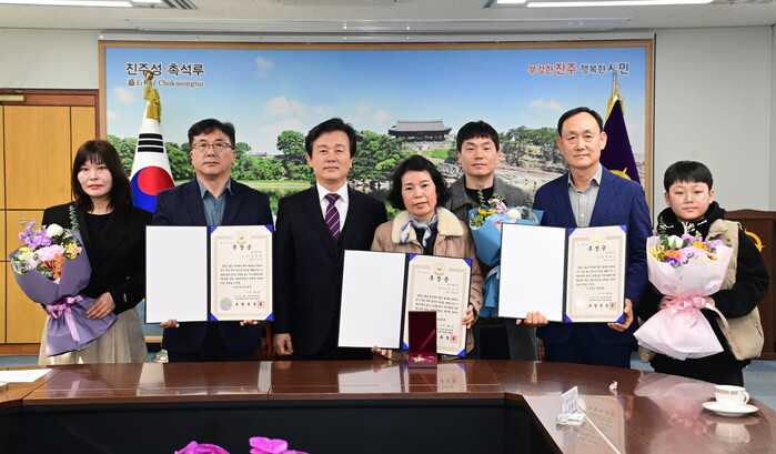 진주시는 지난 18일 6·25전쟁 참전유공자인 故 김복태 중사와 故 천종근 병장, 故 손문조 상병의 화랑무공훈장을 고인의 자녀 김영인 씨와 조카 천희주, 손현식 씨에게 각각 전수했다.