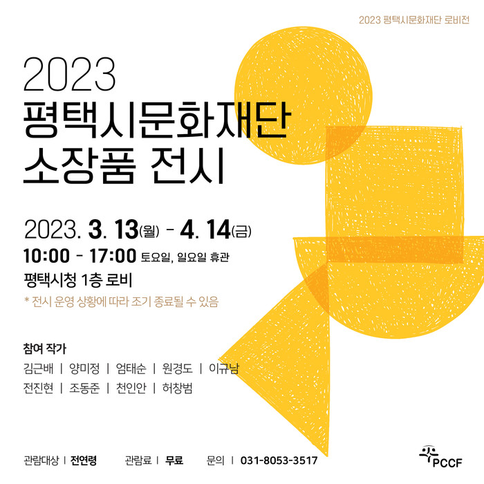 [평택=오왕석 기자] (재)평택시문화재단(대표이사 이상균)은 오는 3월 13일 월요일부터 4월 14일 금요일까지 <2023 로비展-평택시문화재단 소장품 전시>를 평택 시청 1층 로비에서 개최한다고 밝혔다.