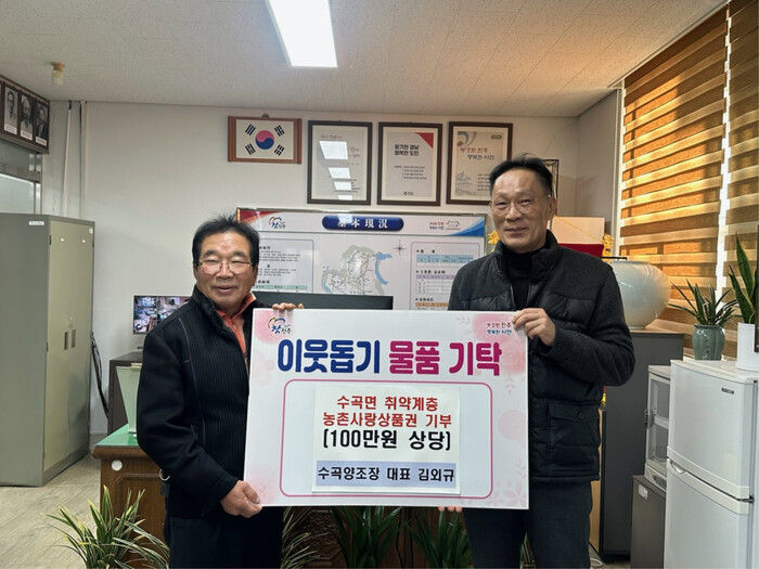 김도영 수곡면장은“도움이 필요한 어려운 이웃을 위해 따뜻한 마음을 나누어준 김외규 대표께 깊이 감사드리며, 상품권은 관내 저소득 20세대에 소중히 전달하겠다”라고 말했다.
