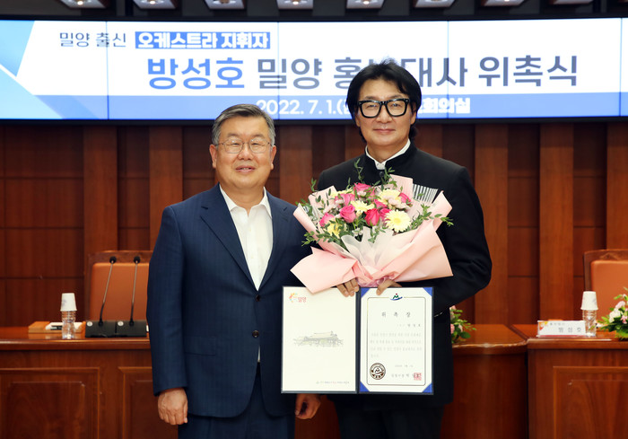 밀양시(시장 박일호)는 1일 오케스트라 지휘자 방성호 씨를 밀양시 홍보대사로 위촉했다고 밝혔다.