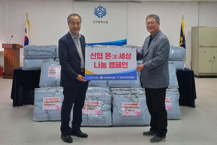 진주행복신협(이사장 윤종권)은 26일 중앙동 행정복지센터에 이불 20채(환가액 100만 원 상당)를 기탁했다.