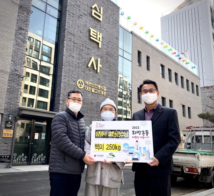 서울 은평구 응암1동은 최근 심택사 효탄 주지스님으로부터 백미 250kg를 기탁받았다. 후원받은 백미는 복지플래너와 직능단체가 발굴해 추천한 기초수급자, 홀몸노인 가구, 한부모가구 등 취약계층 25가구에 전달됐다. 사진은 사랑의 쌀 전달식에서 관계자들이 기념촬영을 하는 모습.(사진제공=은평구청)