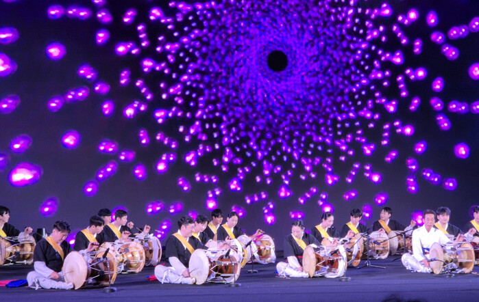 서울 강남구가 26일 오후 7시 '개청 50주년 기념 비전선포식 및 2025 강남페스타벌 개막제' 행사를 개최했다. 사진은 개막식에서 풍물놀이가 진행되고 있는 모습.(사진=이대우 기자)