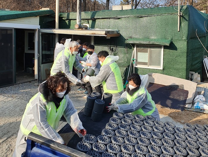 경기 남양주시 별내동 지역사회보장협의체는 지난 16일 겨울철 난방이 취약한 비정형 가구에 연탄 375장을 전달하는 사랑의 연탄 나눔 봉사 활동을 실시했다. 사진은 이날 봉사자들이 연탄을 배달하고 있는 모습.(사진제공=남양주시청
