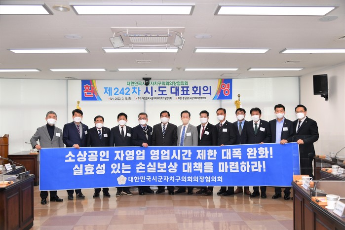 대한민국시군자치구의회의장협의회(회장 조영훈(서울 중구))는 15일(화) 사천시의회에서 242차 대한민국시군자치구의회의장협의회 정례회를 열고 ‘영업시간 완화 및 실효성 있는 손실보상 대책 촉구 건의문’등 3건을 채택하고 행정안전부 등 관계기관에 건의문을 송부했다.