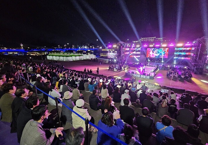 | ▲지난 28일 밀양강변 특설무대에서 ‘2023 전국 K-pop & Hip-hop MY 아리랑 콘테스트’ 결선 무대가 펼쳐지고 있다. |
