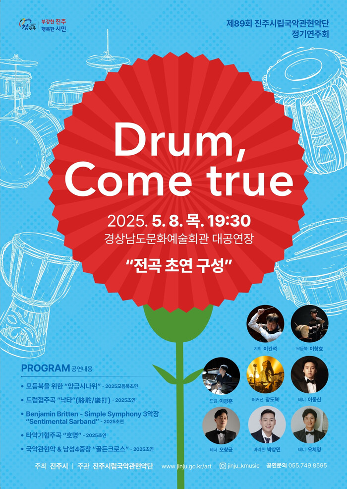 진주시는 오는 5월 8일 오후 7시 30분 경남문화예술회관 대공연장에서 진주시립국악관현악단 제89회 정기연주회‘Drum Come true’를 개최한다고 밝혔다.
