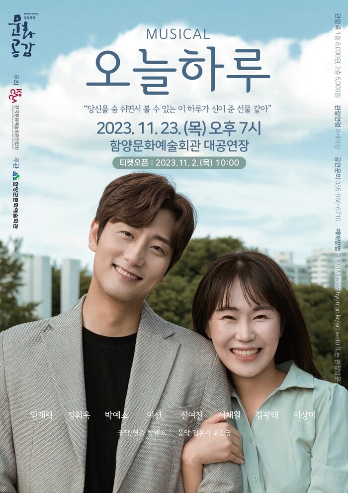<오늘, 하루>는 재즈의 아름다운 선율과 삶의 깊이를 더한 드라마가 만나 온 가족이 함께 웃고 우는 웰 메이드 뮤지컬로 공감을 불러일으키는 현실적인 대사와 감성을 촉촉하게 만드는 드라마, 눈과 귀를 즐겁게 만드는 재즈 음악을 통해 오감이 자극되는 공연으로 한국의 라라랜드라 불리는 작품이며 불운한 삶을 살았던 한 여자가 사랑받는 과정을 통해 변화하는 모습을 그린 감성 재즈 뮤지컬이다.