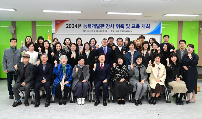 진주시능력개발관은 19일 오전 11시에 능력개발관 세미나실에서 ‘2024년 강사 위촉식 및 상반기 정기과정 강사 교육’을 실시했다.
