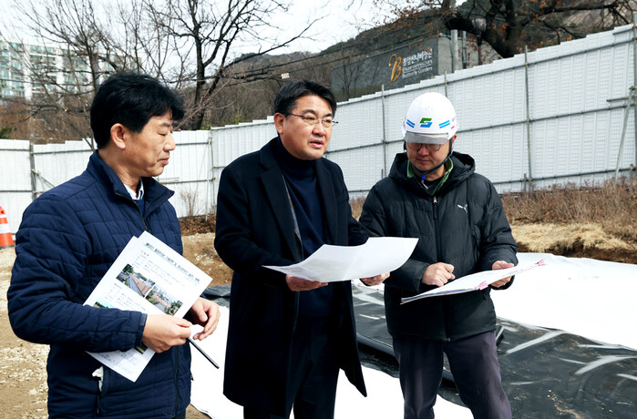 | ▲ 불암산 힐링타운에서 현장점검 하는 사진 (사진=노원구청 제공) |