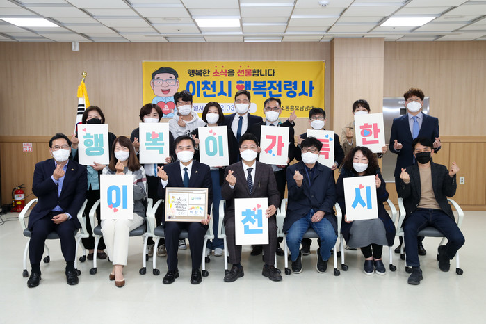 경기 이천시는 지난 30일 제22호 ‘이천시 행복전령사’로 이천발전기획위원회를 선정했다. 이천발전기획위원회는 분야별 8개 분과 71명으로 구성돼 있으며, 다양한 의견과 창의적인 아이디어를 제안해 시민불편 해소와 시정발전에 기여하고 있다. 사진은 이날 엄태준 시장(앞줄 가운데)과 관계자들이 기념촬영을 하는 모습.(사진제공=이천시청)