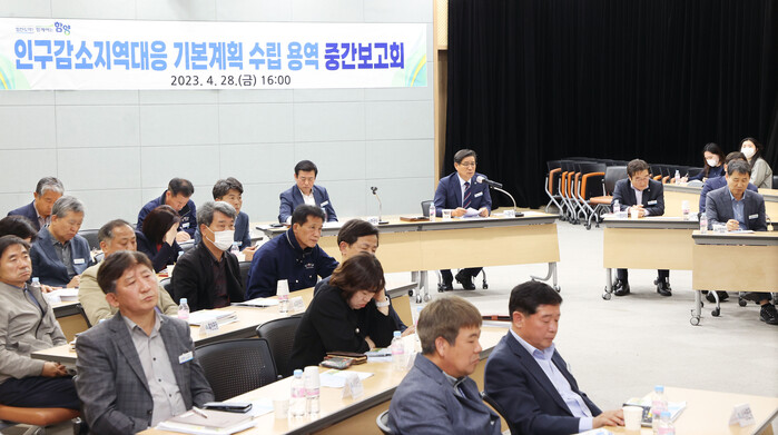 [함양=이영수 기자] 함양군은 28일 진병영 함양군수를 비롯한 간부공무원, 군의원 등 40여명이 참석한 가운데 ‘함양군 인구감소대응 5개년 기본계획 수립 용역 중간보고회’를 개최했다.