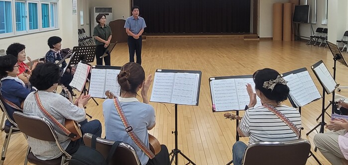 면민들의 활기찬 여가문화 조성을 위해 성진경 강사의 지도하에 수강생 12명에게 우쿨렐레 악기를 이용한 연주 체험 기회를 제공한다.