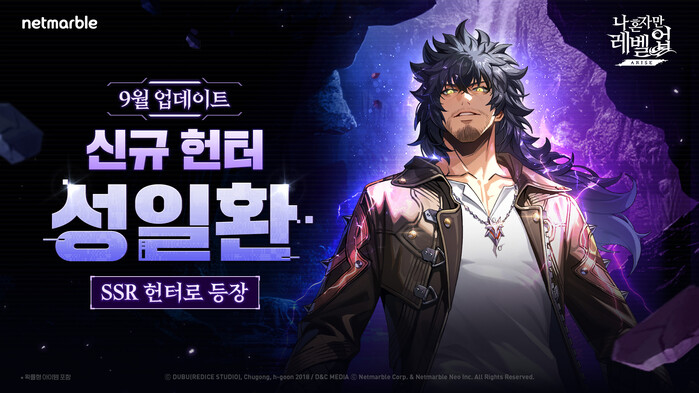 [시민일보 = 여영준 기자] 넷마블은 액션 게임 '나 혼자만 레벨업:어라이즈'(개발사 넷마블네오)에서 신규 SSR 헌터 ‘성일환’을 추가하는 등 업데이트를 진행했다고 25일 밝혔다.
