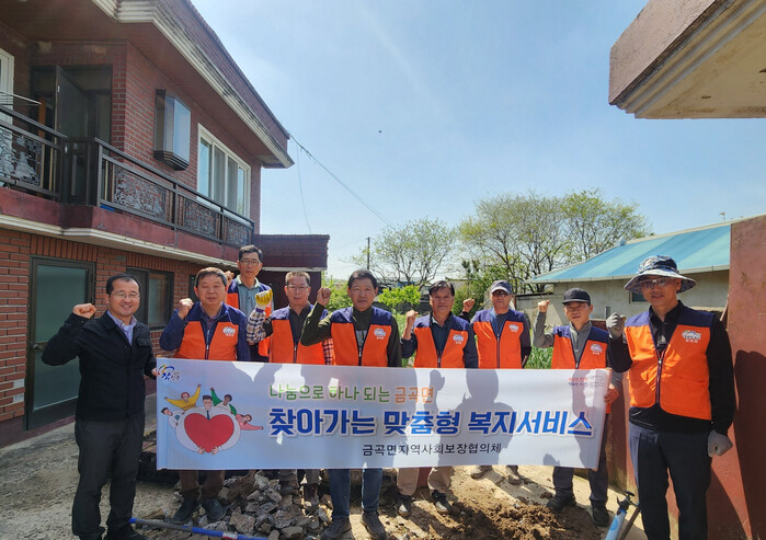 이날 봉사활동에는 금곡면 지역사회보장협의체 위원들이 관내 독거노인 가정에 방문하여 고장난 수도시설을 수리하고 장애인 등 5가구에 밑반찬을 전달하였다.