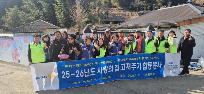 국제로타리 3590지구 진양성로타리클럽(회장 윤성태)은 지난 1월 12일부터 20일까지 9일간 이반성면 관내 취약계층 독거노인을 대상으로 주거환경 개선을 위한 ‘사랑의 집고쳐주기’ 봉사활동을 실시했다.