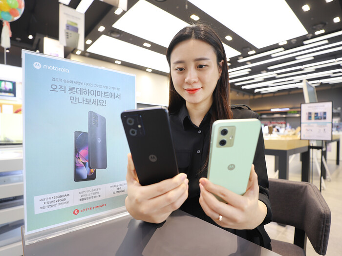 | ▲ 롯데하이마트가 모토로라 스마트폰 ‘Moto G54’ 5G 자급제를 국내 단독 출시한다. (사진=롯데하이마트 제공) |