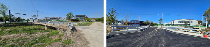 | ▲ 예지교 확장 공사 전(왼쪽)과 공사 후(오른쪽) 모습. |