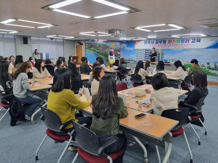 진주시는 30일 시청 3층 문화강좌실에서 공무원을 대상으로 ‘퍼스널컬러’ 교육을 실시해 눈길을 끌었다.